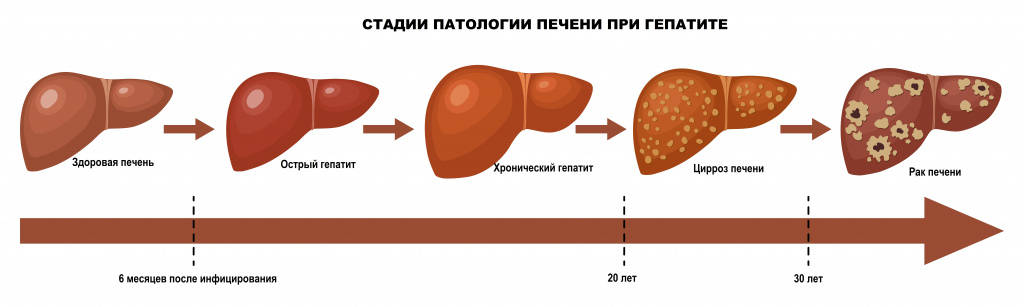 Добавлено: 24.04.2023, 02:17 Источник: ГепатитГепатит это острое или хроническое воспаление печени вследствие действия разных факторов: аутоиммунного и инфекционного процесса, интоксикации бытовыми веществами, ядами, лекарственными препаратами, алкоголем. Заболевание протекает в разных клинических вариантах — от бессимптомного носительства до развития цирроза печени, гепатоцеллюлярного рака. Общие симптомы — интоксикация, боль в правом подреберье, желтушность кожи и слизистых оболочек. В диагностике решающую роль играют биохимические пробы крови, УЗИ и биопсия печени. Лечение включает обязательное соблюдение диеты, симптоматическую и патогенетическую терапию. ![]() Причины появления вирусного гепатитаНа сегодняшний день выявлено три основных пути передачи энтеральных гепатитов А и Е: - водный путь - при использовании некачественной питьевой воды, купании в загрязненных водоемах и бассейнах; - пищевой путь - при употреблении продуктов, загрязненных вирусом во время производства на пищевых предприятиях, предприятиях общественного питания и торговли; - контактно-бытовой путь - при несоблюдении правил личной гигиены. Основные пути передачи парентеральных (то есть передающихся через кровь) гепатитов B, C и D: - при контакте с кровью или биологическими жидкостями больного (или носителя); - при медицинских манипуляциях – переливании зараженной крови и ее препаратов (плазмы и др.), при проведении сеансов гемодиализа, инъекциях, акупунктуре, при многократном использовании инъекционных игл и канюль; - половой - при незащищенном сексуальном контакте с инфицированным человеком или носителем вируса; - во время родов или с молоком матери; при контакте с предметами, загрязненными кровью больного (бритва, зубная щетка, маникюрные принадлежности, медицинский инструментарий); - через немедицинские манипуляции – употребление инъекционных наркотиков, выполнение пирсинга, татуировки. Все вирусы гепатита достаточно устойчивы в окружающей среде. Некоторые пациенты, инфицированные вирусами гепатита В, С и D, сами не болеют, но, являясь носителями, представляют опасность в плане заражения окружающих. ![]() Токсические гепатиты Развиваются в результате попадания в организм токсических веществ. Губительно воздействуют на клетки печени ядовитые грибы, сельскохозяйственные и бытовые химические вещества, металлы, хлорированные углеводороды. Яды проникают в организм через кожу, при вдыхании и употреблении внутрь. Справка! Действие токсических компонентов значительно усиливается у людей с дефицитом белка, истощением, при употреблении больших доз алкоголя. Беспорядочный прием гепатотоксических медикаментов провоцирует лекарственный гепатит. Вероятность поражения клеток печени зависит от индивидуальной чувствительности к тому или иному препарату. Вообще, любое лекарственное средство способно вызвать воспаление печени и формирование гепатита разной степени тяжести. Длительное злоупотребление алкоголем становится причиной возникновения алкогольного гепатита. Как правило, развивается спустя 5–7 лет регулярного употребления спиртных напитков. Это предвестник или начальное проявление цирроза печени. Имеет неблагоприятный прогноз. Лучевой гепатит Это редкая форма гепатита, возникает из-за воздействия на организм больших доз ионизирующего